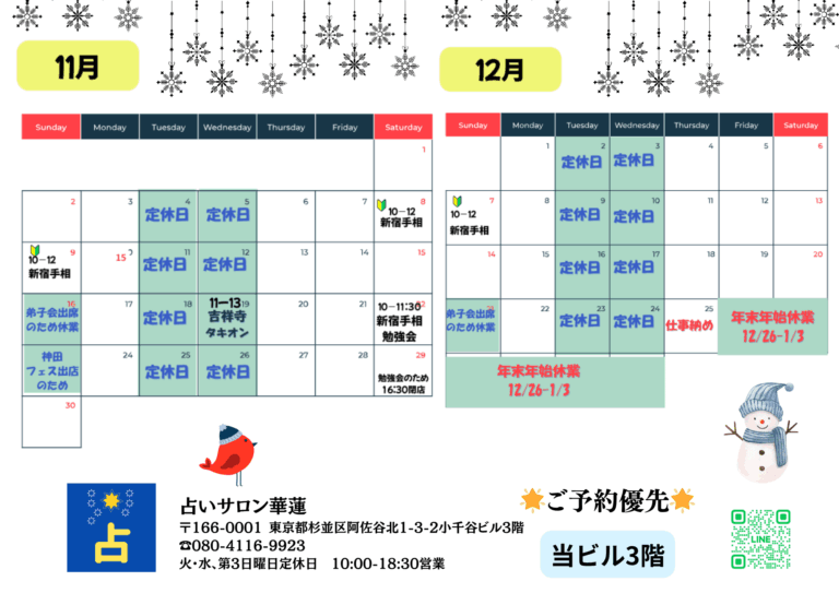 11,12月臨時休業日等のお知らせ